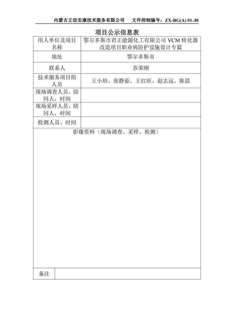 鄂爾多斯市君正能源化工有限公司VCM轉(zhuǎn)化器改造項目職業(yè)病防護設(shè)施設(shè)計專篇公示信息表