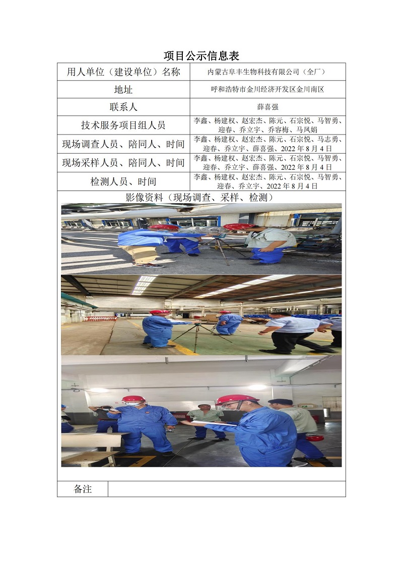 內(nèi)蒙古阜豐生物科技有限公司(全廠)定期檢測項目公示