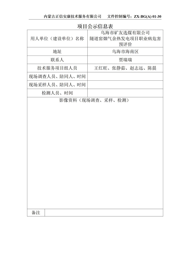 礦友余熱發(fā)電預(yù)評項(xiàng)目公示信息表