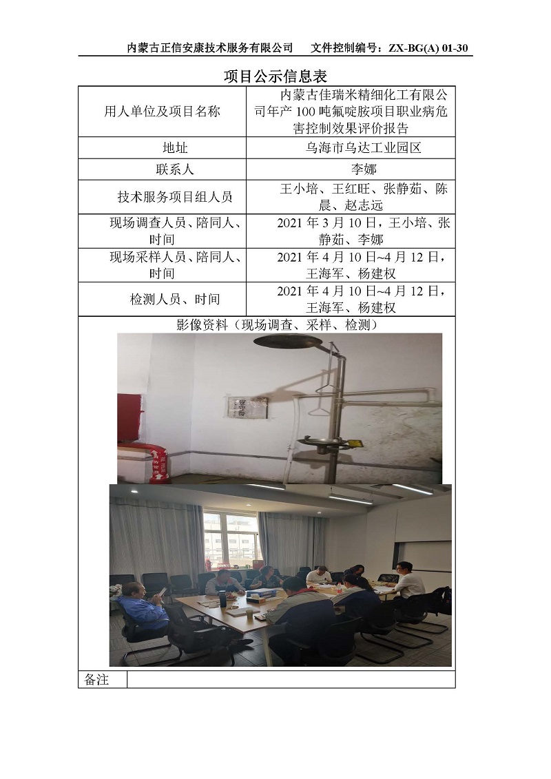 內(nèi)蒙古佳瑞米精細化工有限公司年產(chǎn)100噸氟啶胺項目職業(yè)病危害控制效果評價