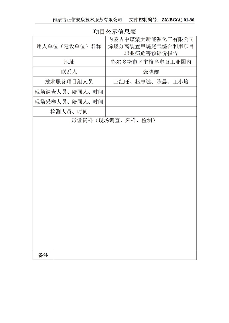 中煤蒙大烯烴分離LNG預(yù)評項(xiàng)目公示信息表