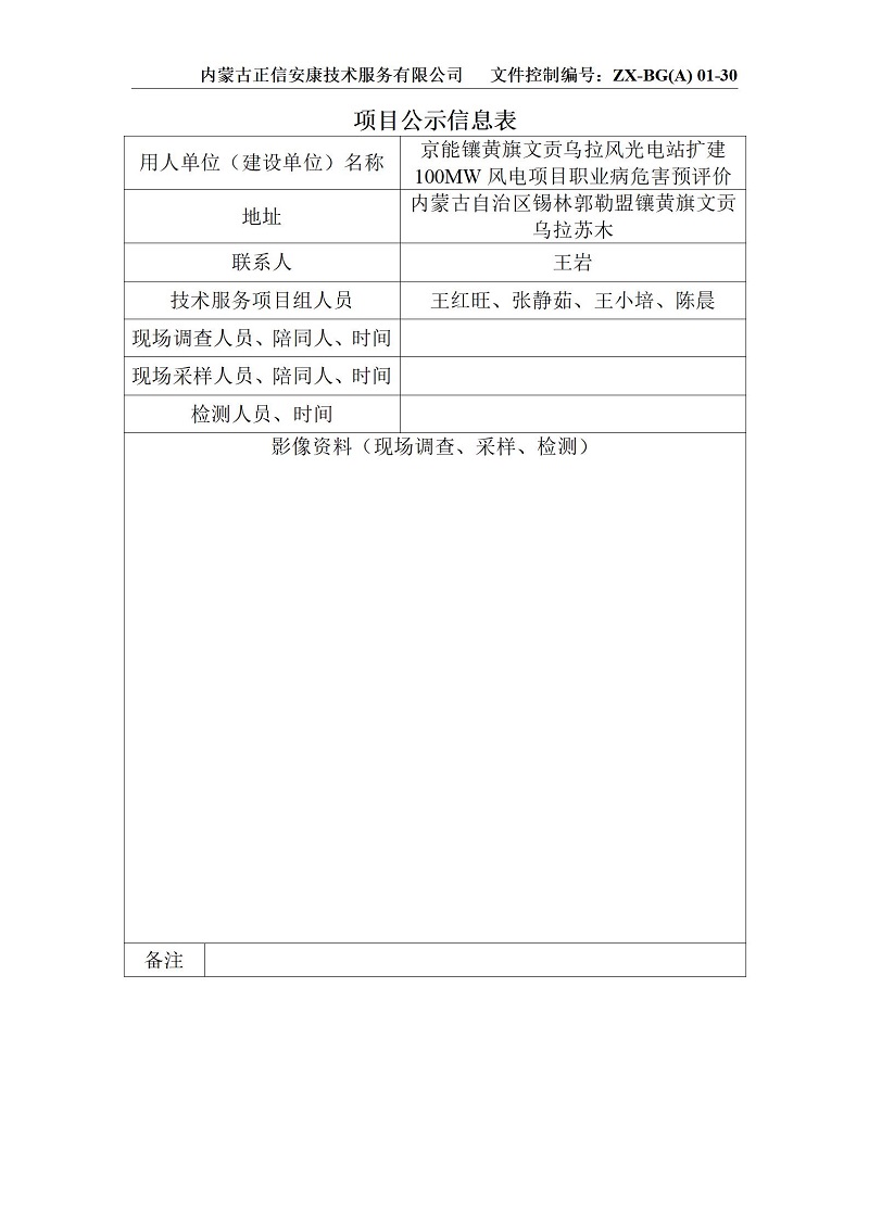 京能鑲黃旗文貢烏拉風電預評項目公示信息表