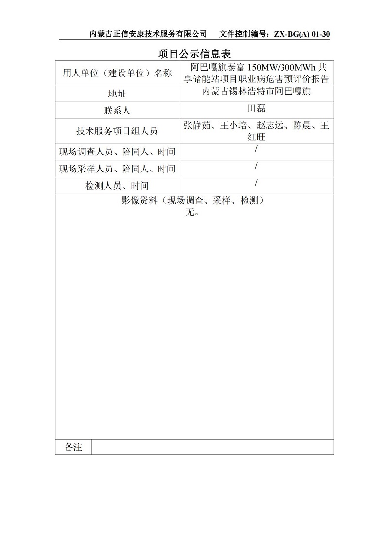 阿巴嘎旗泰富150MW300MWh共享儲(chǔ)能站項(xiàng)目職業(yè)病危害預(yù)評(píng)價(jià)項(xiàng)目公示