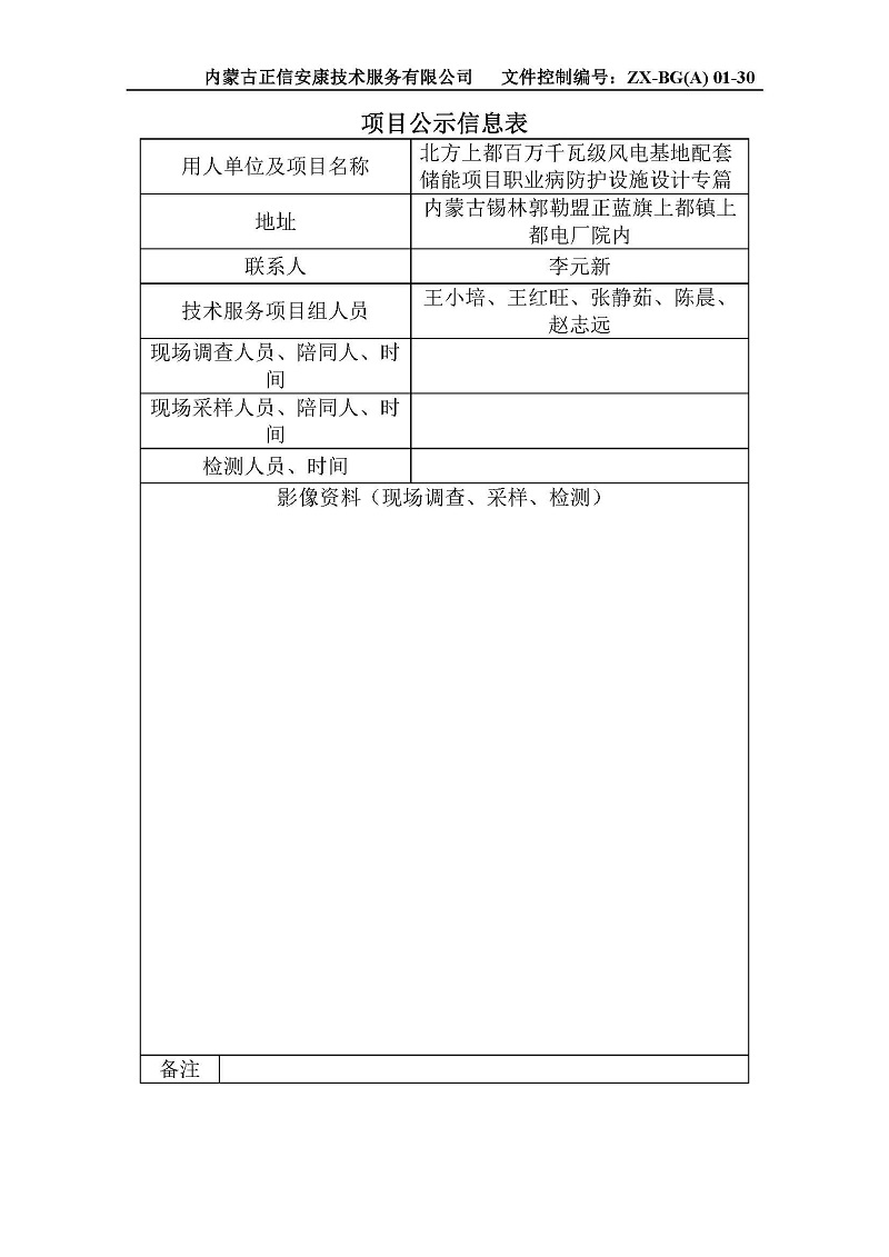 北方上都百萬千瓦級風(fēng)電基地配套儲能項目職業(yè)病防護(hù)設(shè)施設(shè)計專篇項目公示信息表