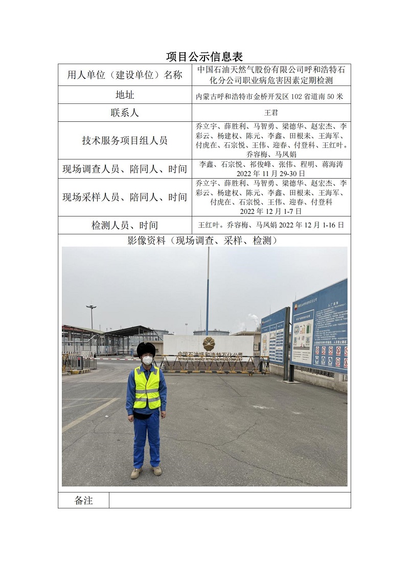 中國石油天然氣股份有限公司呼和浩特石化分公司職業(yè)病危害因數(shù)定期檢測信息公示