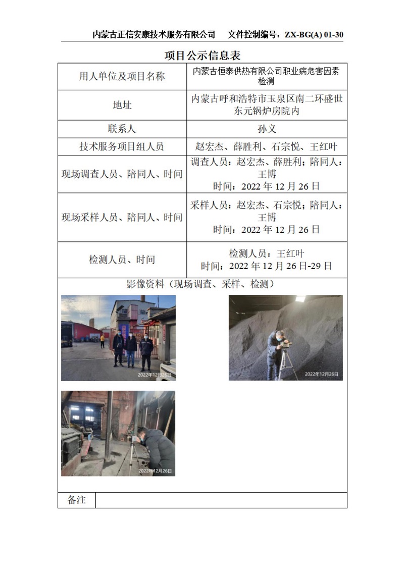 內(nèi)蒙古恒泰供熱有限公司職業(yè)病危害因素檢測項目公示信息表_