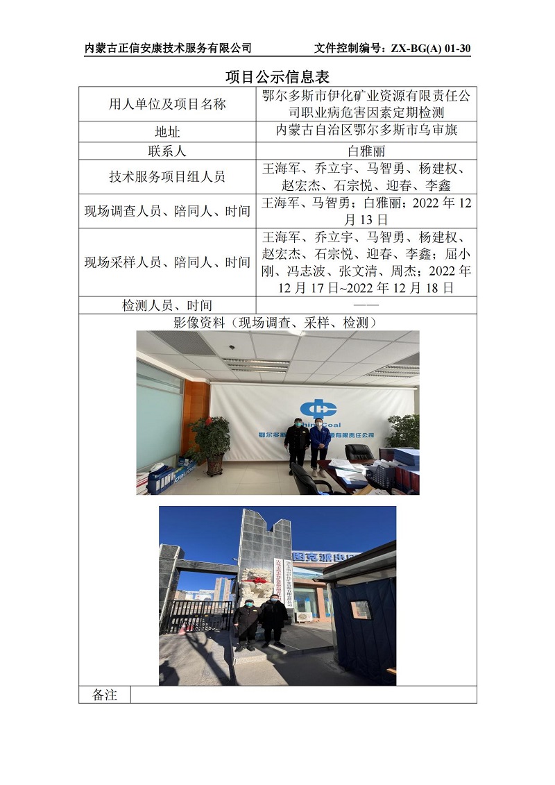 鄂爾多斯市伊化礦業(yè)資源有限責(zé)任公司職業(yè)病危害因素定期檢測(cè)