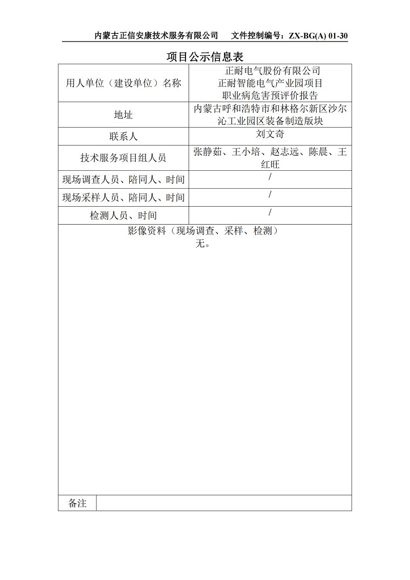 正耐電氣 預(yù)評(píng)