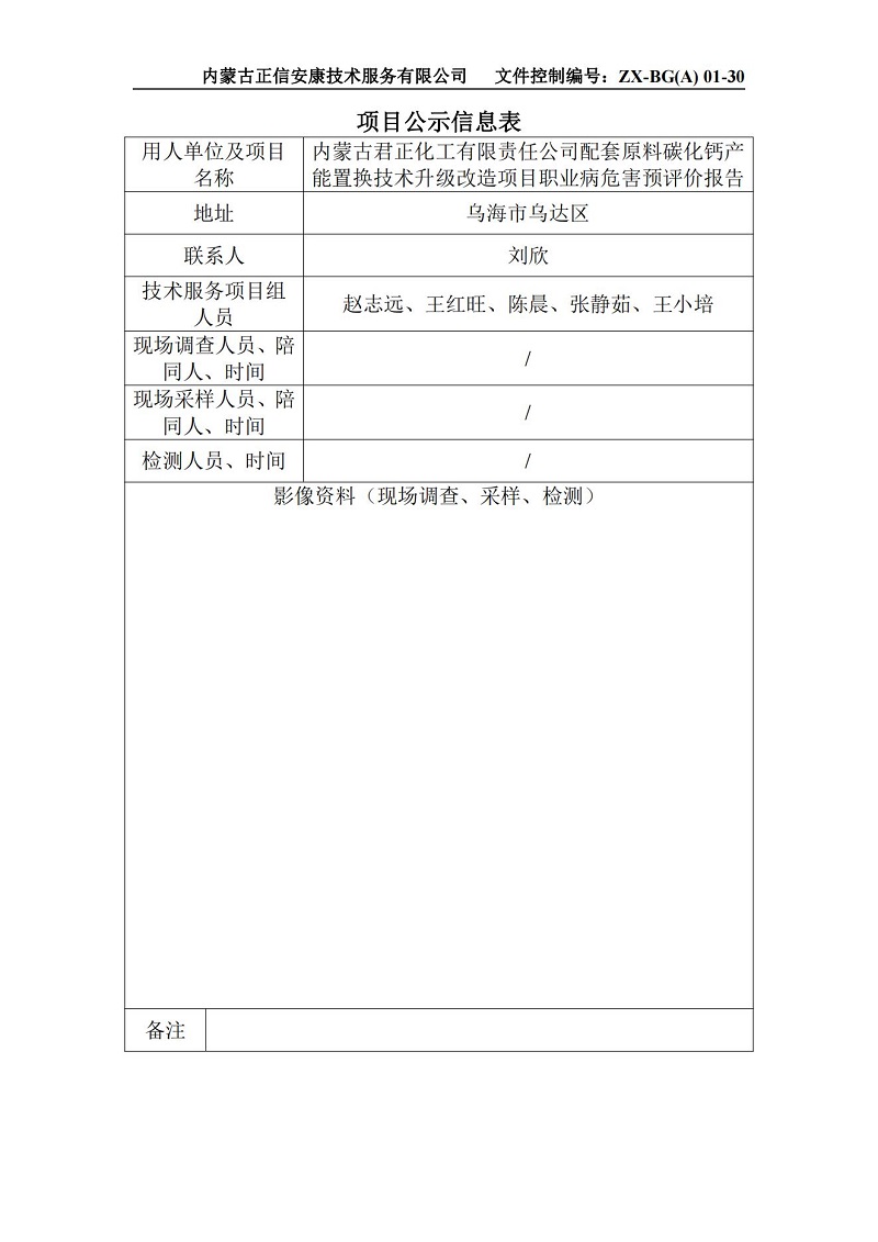 內(nèi)蒙古君正化工有限責(zé)任公司優(yōu)化原料配比節(jié)能環(huán)保技改項(xiàng)目職業(yè)病危害預(yù)評(píng)價(jià)報(bào)告-項(xiàng)目公示信息表