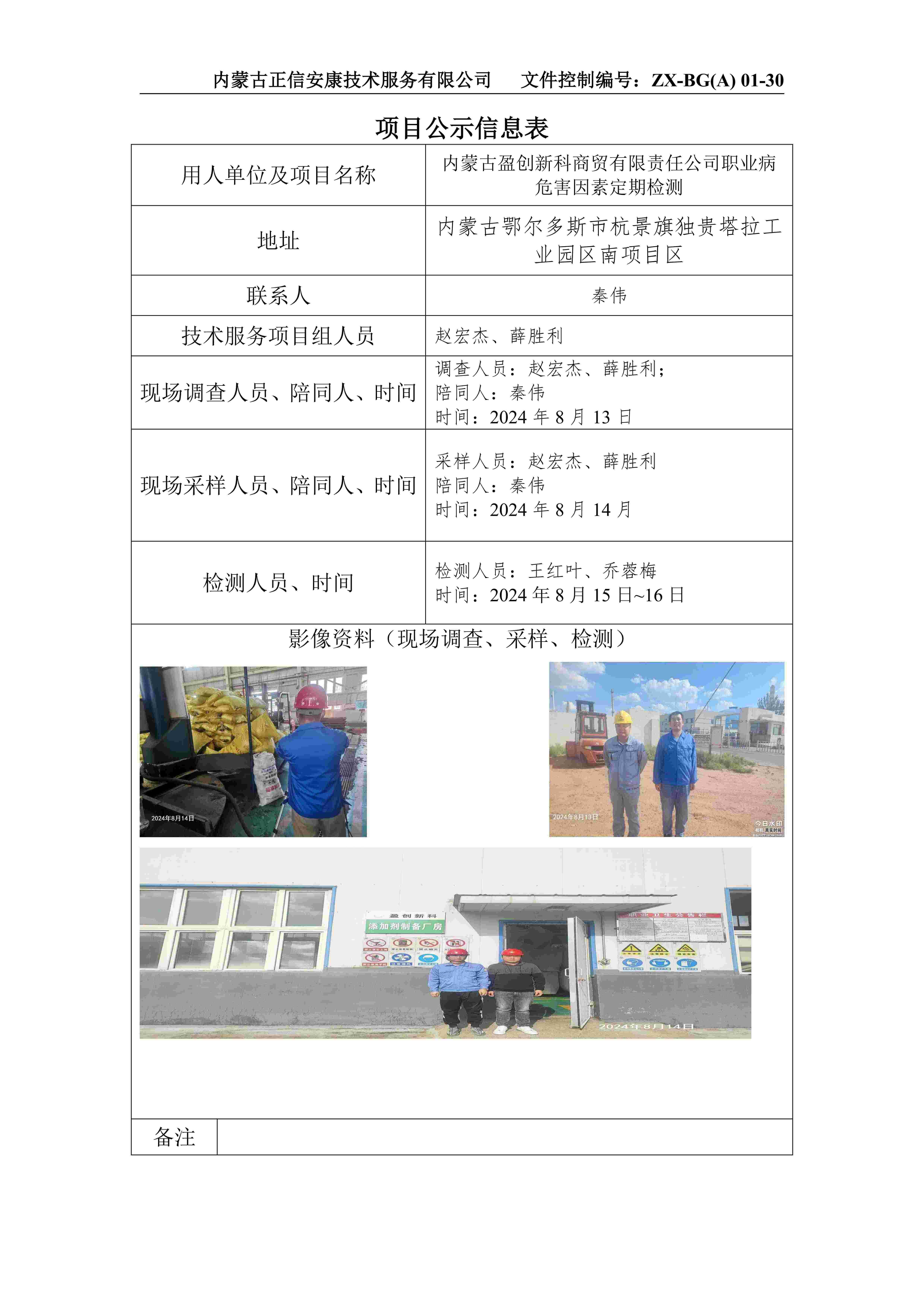 內(nèi)蒙古盈創(chuàng)新科商貿(mào)有限責(zé)任公司職業(yè)病 危害因素定期檢測(cè)