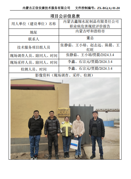 內(nèi)蒙古鑫翔水泥制品有限責(zé)任公司職業(yè)病危害現(xiàn)狀評(píng)價(jià)