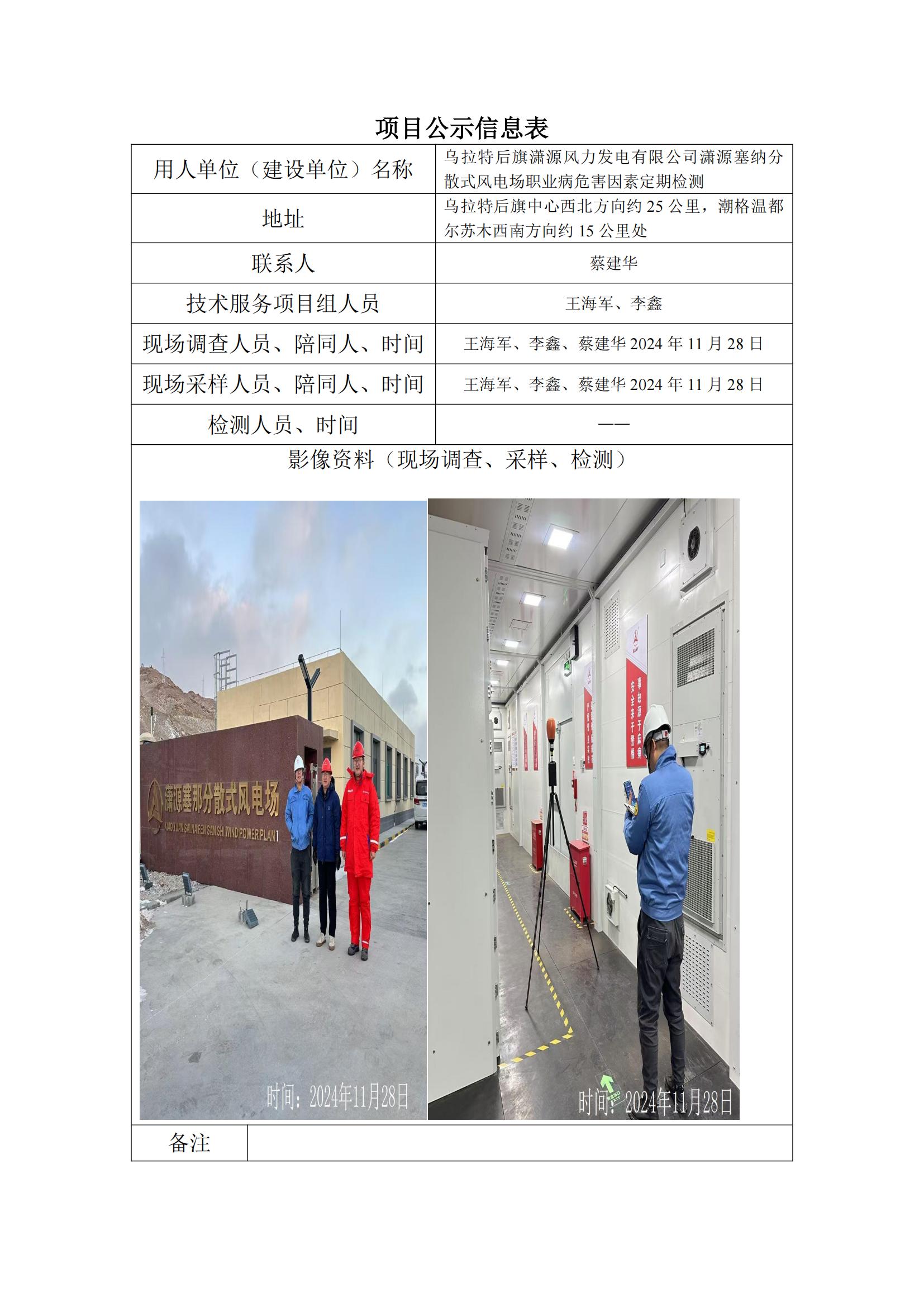 烏拉特后旗瀟源風(fēng)力發(fā)電有限公司瀟源塞納分散式風(fēng)電場職業(yè)病危害因素定期檢測